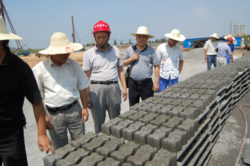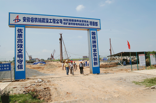 2009年9月4日,公司黨委書記、總經(jīng)理李世龍,副總經(jīng)理侯力,總工程師盛智杰及辦公室主任紀(jì)愛國一行到銅陵港橫港碼頭項目部施工現(xiàn)場,對工程施工進度及現(xiàn)場施工質(zhì)量進行認(rèn)真檢查。