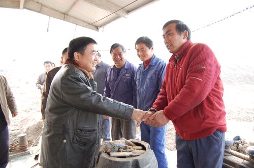 2009年12月24日上午,集團(tuán)公司胡運(yùn)成董事長在公司總經(jīng)理李世龍、辦公室主任紀(jì)愛國的陪同下來到渦河河道疏浚工程項(xiàng)目現(xiàn)場檢查指導(dǎo)工作,并看望和慰問了全體施工人員。
