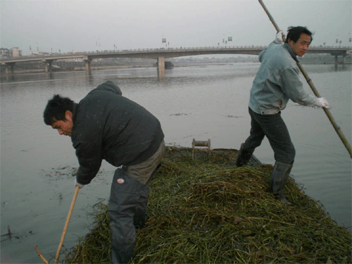 渦河亳州市城區(qū)段浮草打撈作業(yè)小記
