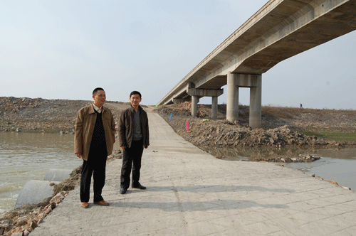 2010年2月22日,公司黨委書記、總經(jīng)理李世龍,副總經(jīng)理侯力、辦公室主任紀愛國等一行到蕪申運河馬宣段當高橋工程WSYH-03標施工現(xiàn)場檢查工作。
