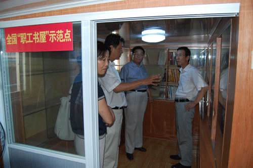 張書(shū)記、劉主席等一行參觀第七工程處全國(guó)“職工書(shū)屋”示范點(diǎn)