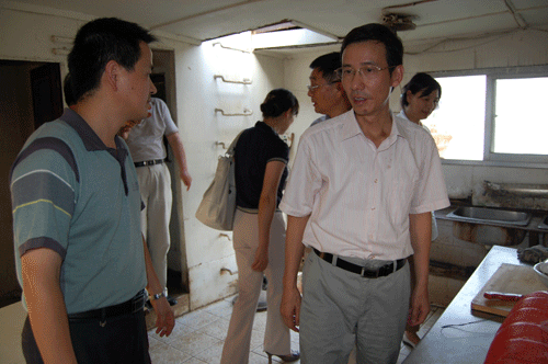 張書(shū)記、劉主席等一行參觀第七工程處食堂關(guān)心職工生活