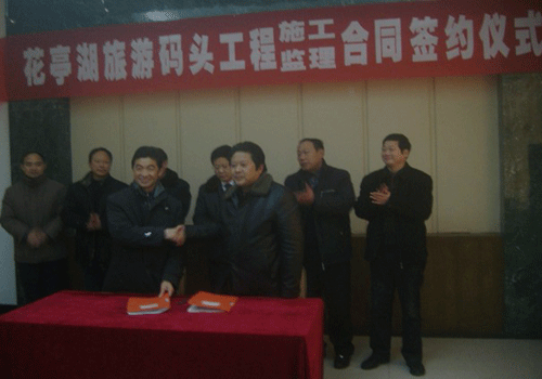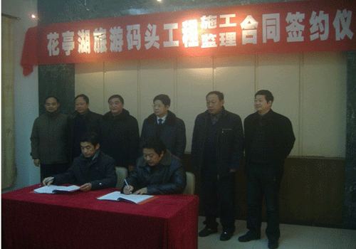 1月18日,我公司中標(biāo)的安徽省太湖縣花亭湖旅游碼頭工程簽約儀式在太湖縣龍山宮賓館舉行,簽約儀式由太湖縣花亭湖風(fēng)景區(qū)管理處主持,太湖縣委常委、縣政府常務(wù)副縣長李琳以及相關(guān)負責(zé)人參加了簽約儀式。
