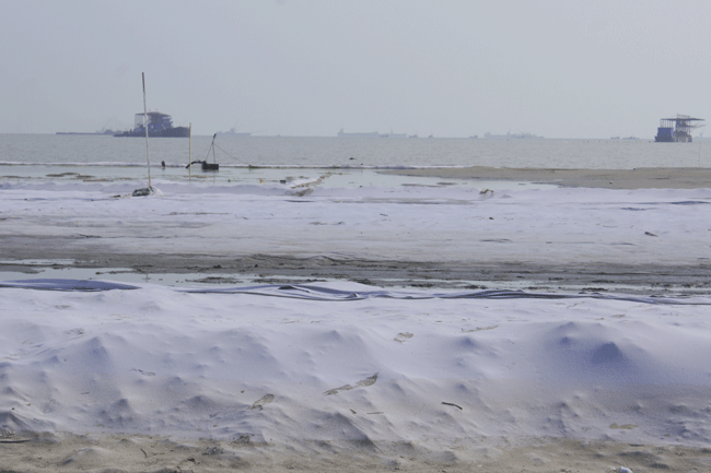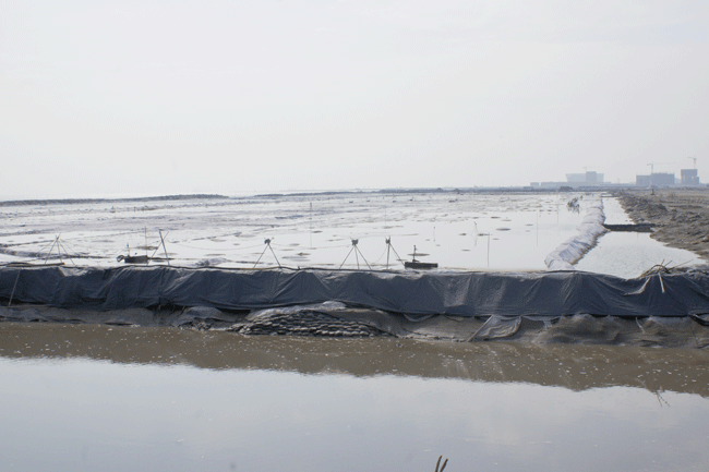 李總一行參觀了天津?yàn)I海新區(qū)圍海造田項(xiàng)目現(xiàn)場,考察了真空預(yù)壓技術(shù)的實(shí)際應(yīng)用。真空預(yù)壓法是在需要加固的軟土地基表面先鋪設(shè)砂墊層,然后埋設(shè)垂直排水管道,再用不透氣的封閉膜使其與大氣隔絕,薄膜四周埋入土中,通過砂墊層內(nèi)埋設(shè)的吸水管道,用真空裝置進(jìn)行抽氣,使其形成真空,增加地基的有效應(yīng)力。