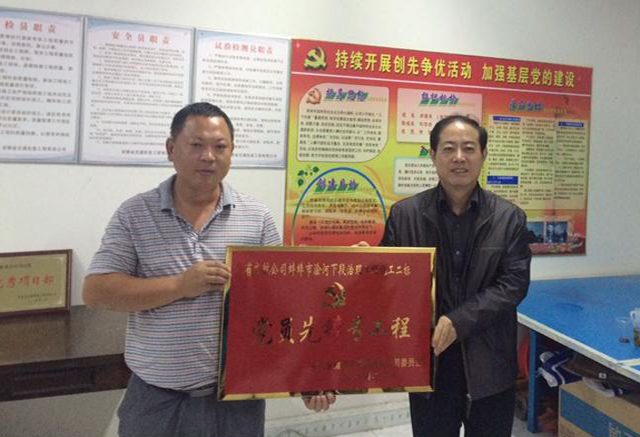 10月13日下午,集團(tuán)公司黨委副書記、副董事長李長斌、集團(tuán)黨委工作部主任胡建英、副主任邢應(yīng)梅等一行,在公司黨委副書記、紀(jì)委書記戴樹明等的陪同下,蒞臨交航公司澮河下段治理工程施工2標(biāo)項(xiàng)目部,為該項(xiàng)目爭創(chuàng)“黨員先鋒號工程”授牌。