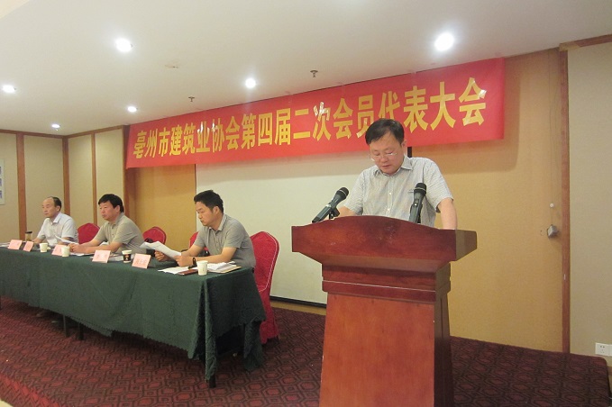 6月19日上午,在市華膳樓二樓會議室召開了亳州市建筑業(yè)協(xié)會第四屆二次會員代表大會。會議由協(xié)會秘書長盧峰主持,市住建部門、縣(區(qū))分管領導以及100余名會員代表應邀出席會議。亳州建工董事長李濤作為市建筑業(yè)協(xié)會第四屆理事會會長,向大會作了工作報告,公司總經(jīng)理方申柱作為協(xié)會副會長參加了會議。