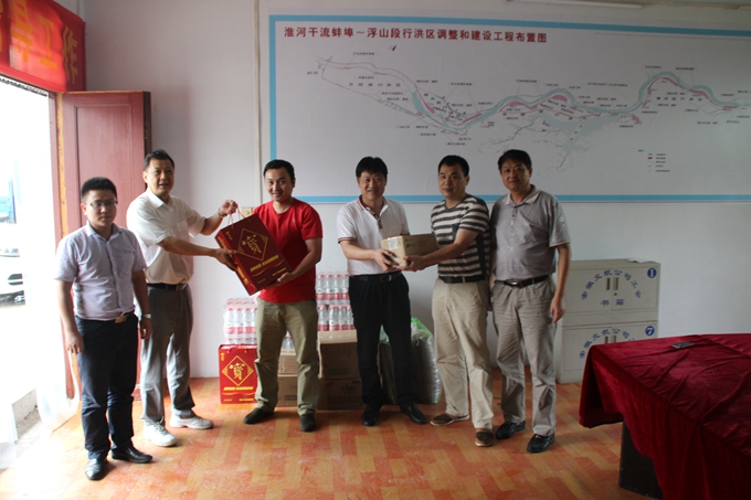 2015年8月10日上午,集團(tuán)副總經(jīng)理許克順、人力資源部主任李鵬飛等人一行在公司工會(huì)主席王永來、人力資源部主任王雪梅的陪同下來到我淮干臨北項(xiàng)目送清涼,為大家送來了夏季防暑降溫用品和慰問金。