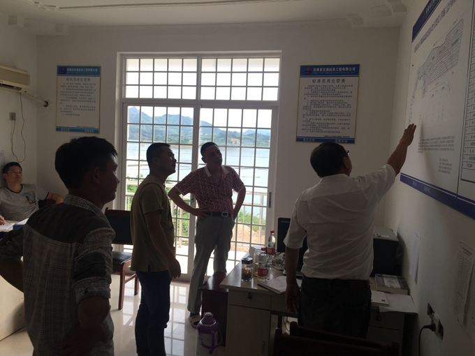 安糧黃山太平湖項(xiàng)目主體工程為水下樁基礎(chǔ)工程和上部混凝土梁板結(jié)構(gòu)工程,工程地處山區(qū)涉太平湖水上作業(yè),施工受天氣、地形、水位、水下施工環(huán)境等影響因素較大,施工難度較大,公司領(lǐng)導(dǎo)對該項(xiàng)目也格外關(guān)注與關(guān)心。一到項(xiàng)目部,李董事長一行便直奔工地施工現(xiàn)場,認(rèn)真聽取了項(xiàng)目負(fù)責(zé)人對當(dāng)前施工部署、施工進(jìn)度及存在的重點(diǎn)、難點(diǎn)等情況匯報(bào),他首先肯定了項(xiàng)目全體人員辛苦與努力,同時(shí)提出幾點(diǎn)希望:一是要根據(jù)現(xiàn)有施工方案進(jìn)一步優(yōu)化,合理有效的組織施工,加快施工進(jìn)度;二是要規(guī)范現(xiàn)場施工管理,確保施工管理的各項(xiàng)工作開展有序,使安全、質(zhì)量、成本、進(jìn)度處于受控狀態(tài);三是要加強(qiáng)學(xué)習(xí),利用業(yè)余時(shí)間學(xué)習(xí)專業(yè)知識、學(xué)習(xí)集團(tuán)項(xiàng)目管理辦法及相關(guān)規(guī)章制度文件,認(rèn)真做好“傳幫帶”工作,以有經(jīng)驗(yàn)帶動(dòng)無經(jīng)驗(yàn),年輕員工向老員工學(xué)習(xí),邊工作邊學(xué)習(xí),在實(shí)踐中快速成長。隨后,公司副總經(jīng)理劉朝發(fā)對下一步的工作計(jì)劃作了具體的明確與要求,并叮囑項(xiàng)目部人員要做好夏季高溫防暑降溫工作,注重勞逸結(jié)合,要制定夏季高溫防暑降溫工作計(jì)劃和應(yīng)急方案,合理組織施工。