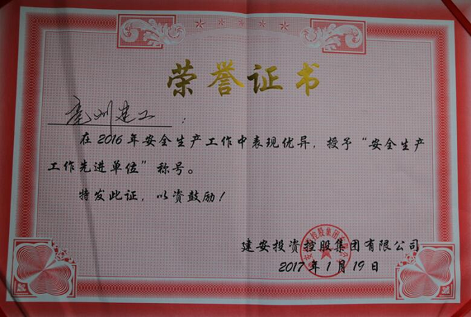 1月19日,在建安集團(tuán)組織召開的2016年第四季度暨年度安全生產(chǎn)工作總結(jié)會上,建安集團(tuán)授予亳州建工有限公司“安全生產(chǎn)工作先進(jìn)單位”榮譽(yù)稱號。