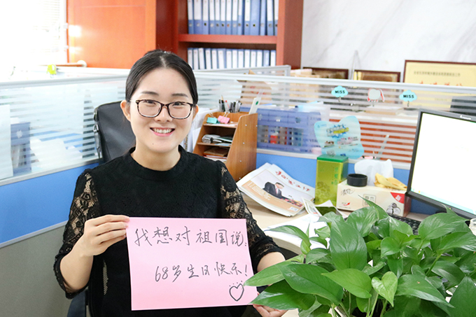 “神州大地繁花似錦,祖國長空樂曲如潮。祝福偉大祖國繁榮昌盛、國泰民安!”