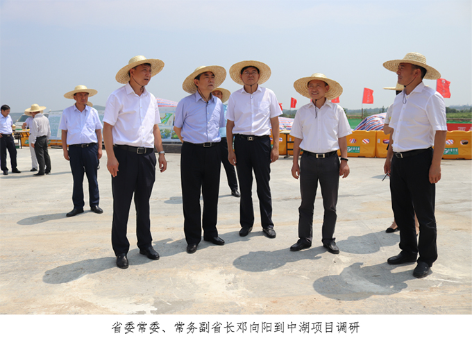 淮北市委市政府高度重視中湖項(xiàng)目,自開(kāi)工以來(lái),已有來(lái)自省委、省人大、省政協(xié)等單位的10余位省部級(jí)領(lǐng)導(dǎo)蒞臨現(xiàn)場(chǎng)視察工作?;幢笔形瘯?shū)記、市人大常委會(huì)主任黃曉武常邀各級(jí)領(lǐng)導(dǎo)登上中湖一期1#湖心島視察,并親自當(dāng)起講解員,描繪未來(lái)淮北“一帶雙城三青山、六湖九河十八灣”的美好藍(lán)圖。