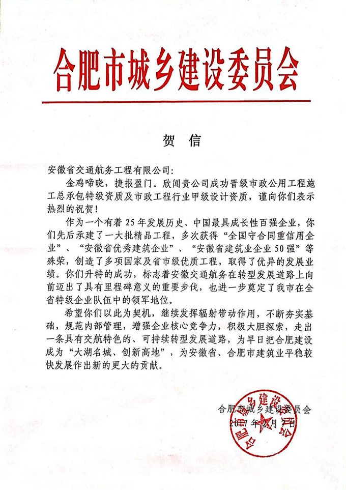市場準(zhǔn)入是企業(yè)進(jìn)行市場經(jīng)營活動(dòng)的敲門磚,也見證企業(yè)基礎(chǔ)建設(shè)水平的高低。曾幾何時(shí),安徽交航受困于此、受制于此、受限于此,僅憑主項(xiàng)二級(jí)資質(zhì)在如浪淘沙般的激烈市場上匍匐前行、艱難開拓,是為交航全體職工特別是勇于面對(duì)困難、敢于突破壁壘的市場經(jīng)營驕子們的“心痛”。鑒于此,公司黨委領(lǐng)導(dǎo)班子審時(shí)度勢(shì)、高瞻遠(yuǎn)矚,及時(shí)提出資質(zhì)、注冊(cè)資本等市場準(zhǔn)入建設(shè)“三步走”規(guī)劃:主項(xiàng)提升、“品”字業(yè)務(wù)資質(zhì)完善與提升、相關(guān)多元完善和提升。功夫不負(fù)有心人,千帆過盡不忘初心,企業(yè)市場準(zhǔn)入建設(shè)工作正蹄疾步穩(wěn)、著力為交航差異化大發(fā)展助力賀彩!