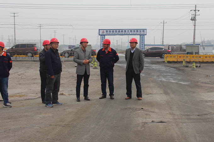 2017年11月14日上午,集團(tuán)公司黨委委員、副總經(jīng)理王厚良在集團(tuán)總經(jīng)理助理、工管部主任童宗勝,總工辦副主任崔林釗,安徽交航副總經(jīng)理劉朝發(fā)等相關(guān)人員陪同下蒞臨安徽交航巢湖亞父路項(xiàng)目調(diào)研指導(dǎo)工作。