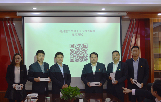 本次測試?yán)眯路f的手機答題模式,圍繞學(xué)習(xí)十九大報告精神開展, 集中檢驗了黨員干部近期的學(xué)習(xí)成果。測試內(nèi)容豐富,緊扣主題,增強了十九大學(xué)習(xí)的氛圍,達(dá)到了以考促學(xué)的效果。最后,支部書記李現(xiàn)龍為測試成績前五名頒發(fā)獎品。
