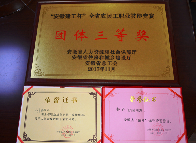 本次競(jìng)賽設(shè)抹灰工、鑲貼工、砌筑工三個(gè)工種,分理論知識(shí)和技能操作兩部分。來(lái)自全省16個(gè)市、2個(gè)省直管縣和安徽建工集團(tuán)有限公司組成的19支代表隊(duì)共76名選手在決賽中展開激烈角逐,比賽高潮迭起、格外精彩。最終,亳州建工派出的選手們憑借過(guò)硬的作風(fēng),精湛的技術(shù)榮獲團(tuán)體三等獎(jiǎng),其中,何幸福獲得抹灰工組一等獎(jiǎng),被授予“安徽省技術(shù)能手”榮譽(yù)稱號(hào),并推薦申報(bào)“省五一勞動(dòng)獎(jiǎng)?wù)隆?,張安?guó)獲得砌筑工組二等獎(jiǎng),被授予安徽省“徽匠”標(biāo)兵榮譽(yù)稱號(hào)。