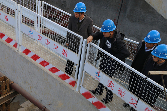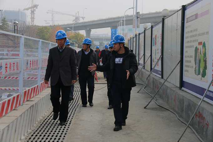 2017年11月28日上午,集團(tuán)公司黨委委員、副總經(jīng)理王厚良一行在安徽交航副總經(jīng)理劉朝發(fā)等相關(guān)領(lǐng)導(dǎo)陪同下,蒞臨合肥市軌道交通4號(hào)線03標(biāo)潛口路站項(xiàng)目調(diào)研工作。