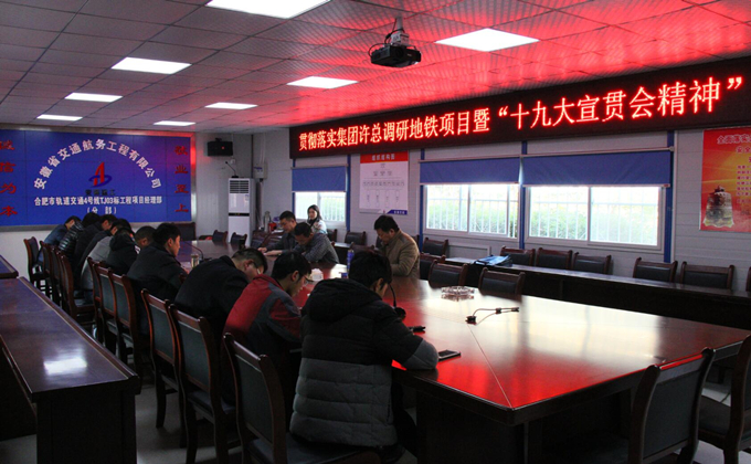 2017年12月24日下午,合肥市軌道交通4號(hào)線03標(biāo)潛口路站項(xiàng)目部召開(kāi)貫徹落實(shí)集團(tuán)公司許總調(diào)研地鐵項(xiàng)目暨“十九大精神”宣貫會(huì),公司副總經(jīng)理侯力,紀(jì)委書(shū)記、工會(huì)主席李楊,總工辦負(fù)責(zé)人衛(wèi)邦齊及項(xiàng)目部各部門(mén)負(fù)責(zé)人參加,會(huì)議由侯總主持。