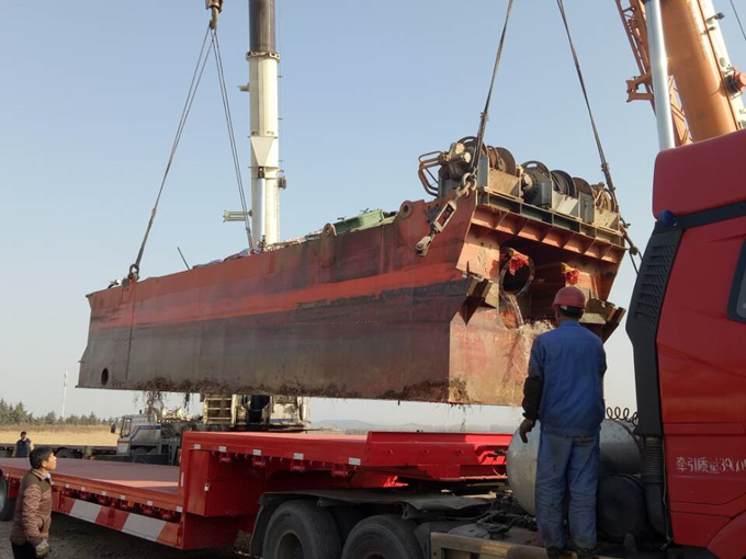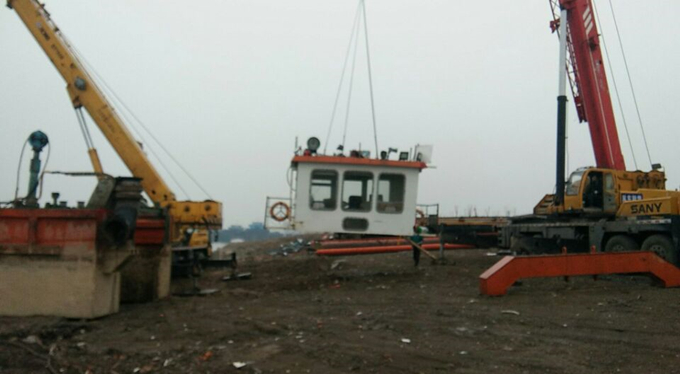 面對皖吸十二號挖泥船這樣幾百噸重的龐然大物,還有拋錨艇等輔助設(shè)備均需短時間從陸上運(yùn)輸?shù)饺俣喙镆酝獾男鹿さ?/FONT>等新問題,疏浚分公司人員開動腦筋、創(chuàng)新思維,積極探索新方法、新思路。疏浚分公司與專業(yè)團(tuán)隊達(dá)成戰(zhàn)略合作框架協(xié)議,大膽利用新技術(shù)、新設(shè)備,以全面提高安全系數(shù),合理高效地利用時間、空間。疏浚分公司將挖泥船及輔助船舶科學(xué)地進(jìn)行水上解體,化整為零后裝車運(yùn)輸,到達(dá)工地后在進(jìn)行水下組裝,在此過程中還進(jìn)行了適當(dāng)?shù)木S修保養(yǎng)。自本月23日到27日共歷時五天時間,皖吸十二號船隊順利抵達(dá)當(dāng)涂天宇船廠并完好無損地保持了原有的各項性能。
