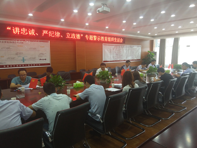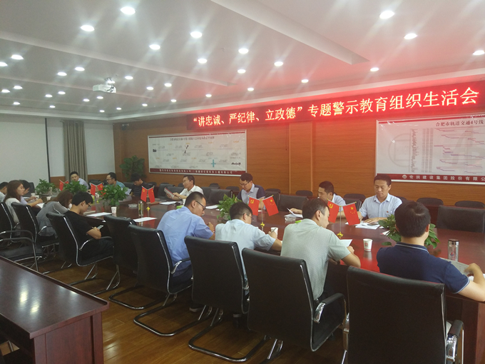 根據(jù)公司黨委統(tǒng)一部署,6月20日,合肥軌道交通4號線TJ03標(biāo)聯(lián)合黨支部召開“講忠誠、嚴(yán)紀(jì)律、立政德”專題警示教育組織生活會。會議由支部書記翁厚洋主持。