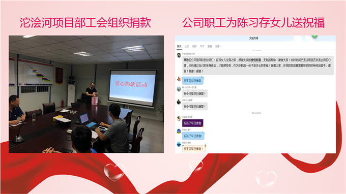 生命對于我們來說,都是寶貴的,擁有健康和快樂是我們每個人的愿望。2018年6月,安徽交航公司淮北中湖項目部陳習(xí)存的女兒被確診為急非淋M2,即急性非淋巴細(xì)胞白血病部分分化型,必須立刻住院進(jìn)行化療,后期進(jìn)行骨髓移植手術(shù),化療費、手術(shù)費和后續(xù)治療將近百萬的費用將這個本不富裕的家庭壓得喘不過氣,孩子的母親在2014年做了心臟病手術(shù),身體一直不好,不能外出工作。