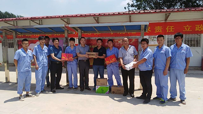 夏日炎炎,烈暑當頭,近日,全省大部高溫炙烤,公司各項目生產(chǎn)正緊鑼密鼓的組織施工。為確保一線員工的身體健康,7月19日,公司副總經(jīng)理、總工程師劉朝發(fā)一行赴蕭楊路項目送清涼。