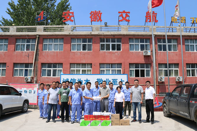 8月3日上午,安徽交航公司紀(jì)委書記、工會主席李楊一行來到沱澮河項(xiàng)目部,看望慰問堅守在高溫烈日下的一線員工,并給職工送去了清涼和關(guān)懷。