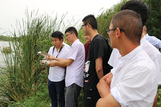 在塘西河流域,公司開展了“無人測量船”的現(xiàn)場培訓活動。安徽省交通勘察設計院測繪處主任孫小偉老師為學員們講解了“無人測深船”的結構配置并現(xiàn)場演示操作。多位學員現(xiàn)場進行的操控演練,加深了對測深船原理和操作方法的了解。