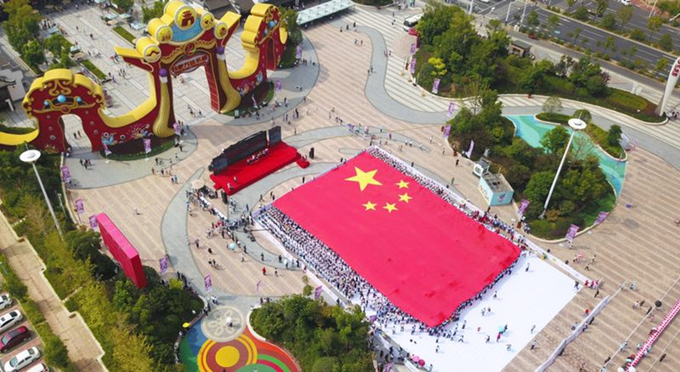 15日上午,秋高氣爽、艷陽高照,濱湖新區(qū)萬達臉譜廣場人潮涌動,氣氛熱烈,來自公司機關(guān)黨支部、軌道項目黨支部和第一工程分公司黨支部的近百名黨員、發(fā)展對象、積極分子和職工代表齊聚這里,現(xiàn)場繪制了近百幅國旗,并齊唱《歌唱祖國》,以這種特殊的方式表達對祖國的熱愛,向國旗敬禮。