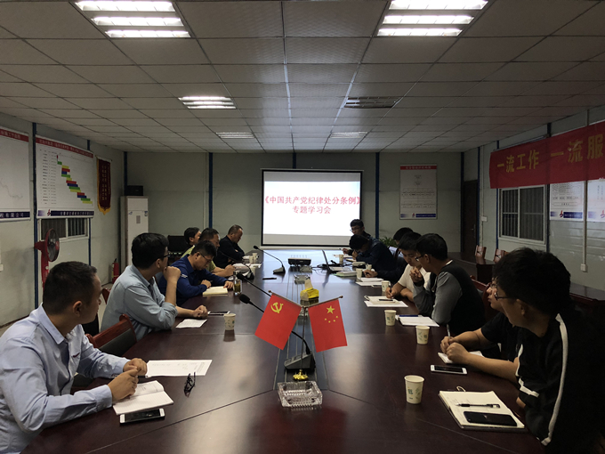 10月10日,沱澮河項目部為深刻落實全面從嚴(yán)治黨,貫徹習(xí)近平新時代中國特色社會主義思想和黨的十九大精神,組織召開學(xué)習(xí)新版《中國共產(chǎn)黨紀(jì)律處分條例》專題會議,項目部全體成員參加了會議。