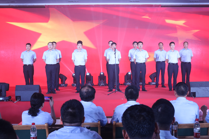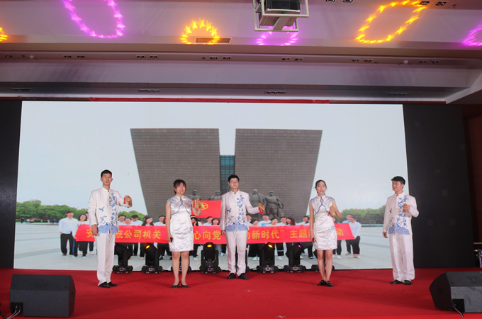 演出伊始,由機(jī)關(guān)黨支部、團(tuán)委表演的《七月的鮮花獻(xiàn)給黨》順利拉開了本次主題文藝匯演的帷幕。由工會(huì)表演的快閃《我和我的祖國(guó)》場(chǎng)面恢弘,引人入勝;《團(tuán)結(jié)就是力量》《祖國(guó)不會(huì)忘記》《軍港之夜》《歌唱祖國(guó)》《同一首歌》等一首首合唱紅歌,氣勢(shì)磅礴,激情萬(wàn)丈,抒發(fā)愛黨情懷;《開黨會(huì)》《我要入黨》等小品節(jié)目?jī)?nèi)涵深刻,以小見大,體現(xiàn)黨性修養(yǎng);《激流勇進(jìn)》《我的祖國(guó)》等舞蹈翩翩起舞,優(yōu)美動(dòng)人,體現(xiàn)朝氣蓬勃的精神面貌??彀濉墩f說咱交航》,朗誦《我的祖國(guó)》,獨(dú)唱《不為誰(shuí)而作的歌》,傳統(tǒng)曲藝《三句半》感情真摯,寓意深遠(yuǎn),體現(xiàn)了青春活力和對(duì)美好未來的深切向往。文藝匯演在公司領(lǐng)導(dǎo)帶領(lǐng)機(jī)關(guān)全體黨員合唱的《我宣誓》中圓滿落下帷幕。