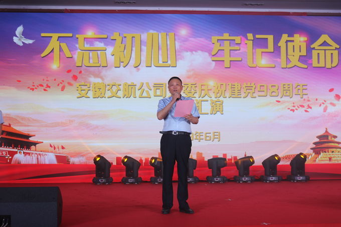 九十八年風(fēng)雨歷程,九十八載春華秋實(shí)。為慶祝中國(guó)共產(chǎn)黨98周年華誕,緬懷光輝歷程,抒發(fā)愛黨情懷,展現(xiàn)交航面貌。 6月30日晚,安徽交航公司黨委在機(jī)關(guān)3樓禮堂隆重舉辦“不忘初心 牢記使命”迎 “七一”主題文藝匯演。