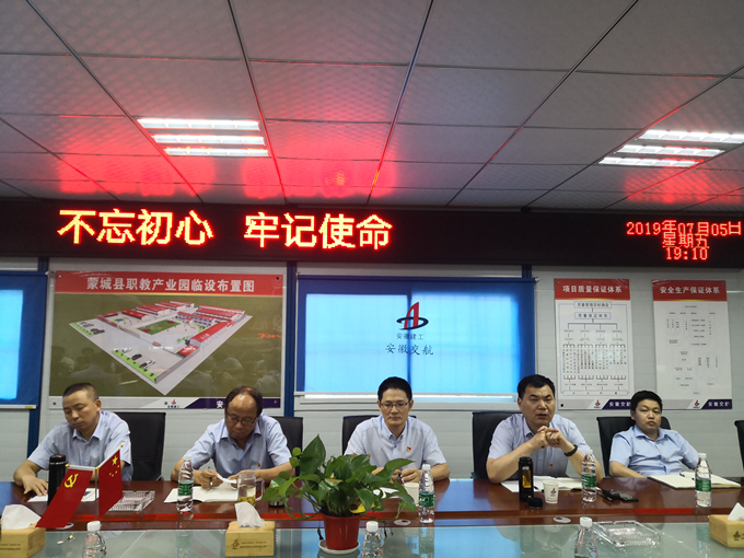 “這是場艱巨的任務(wù),是挑戰(zhàn),更是責(zé)任,公司各部門、項(xiàng)目各成員要樹立強(qiáng)烈的使命感和緊迫感,要看到這場攻堅(jiān)戰(zhàn)的意義重大,也要看到這個(gè)使命的無限光榮,大家一起團(tuán)結(jié)協(xié)作、全力以赴推動職教園項(xiàng)目室外配套工程如期完工。”7月5日,蒙城職教園項(xiàng)目召開項(xiàng)目調(diào)度動員會,交航公司總經(jīng)理方申柱在會上強(qiáng)調(diào)。