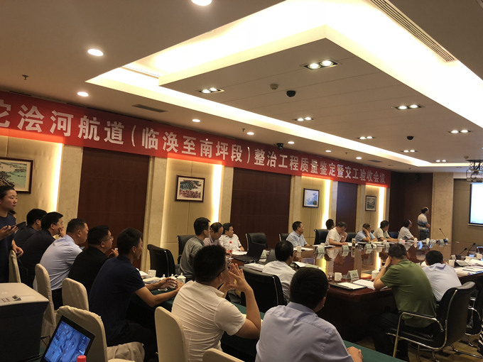 2019年7月13日上午,沱澮河航道(臨渙至南坪段)整治工程召開(kāi)質(zhì)量鑒定及交工驗(yàn)收會(huì),由省質(zhì)監(jiān)局、省海事局、淮北市質(zhì)監(jiān)局、淮北市交通運(yùn)輸局、淮北市水務(wù)局、濉溪縣交通運(yùn)輸局、濉溪縣水務(wù)局等單位的領(lǐng)導(dǎo)、專(zhuān)家組成的質(zhì)量鑒定驗(yàn)收組進(jìn)行評(píng)審,公司副總經(jīng)理侯力參加會(huì)議。