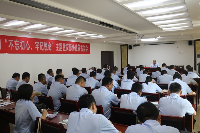 根據(jù)建工控股黨委“不忘初心、牢記使命”主題教育工作部署要求,8月8日下午,安徽交航公司黨委在蒙城項目公司舉辦“不忘初心、牢記使命”主題教育形勢政策報告會。公司黨委書記、董事長李世龍作形勢政策報告。公司工會主席、紀委書記李楊主持報告會。公司領導班子成員、機關部門正職(主持工作副職)、子分公司正職、各支部書記(副書記)、項目經理參加報告會。