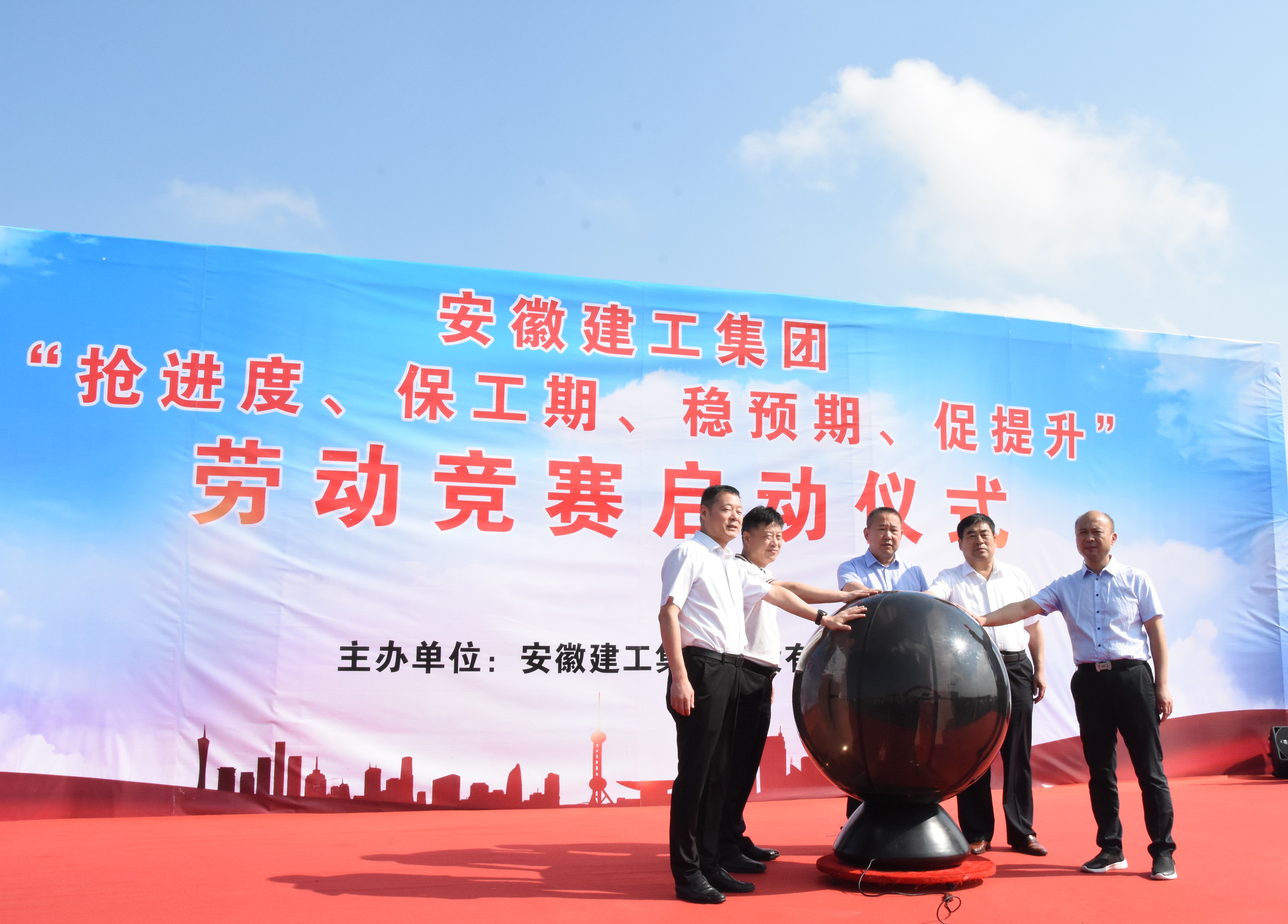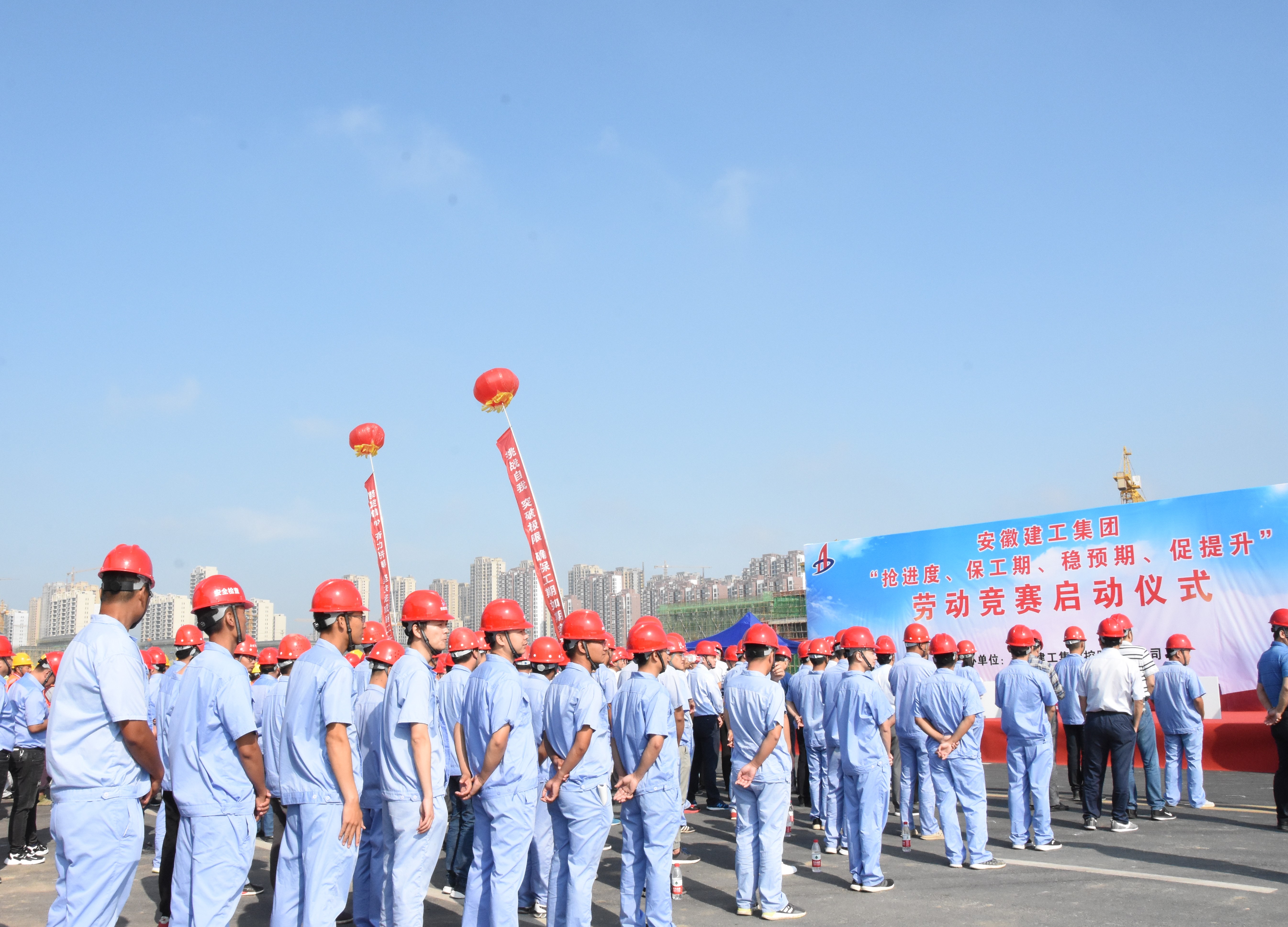 9月4日,安徽建工集團“搶進度、保工期、穩(wěn)預(yù)期、促提升”勞動競賽啟動儀式在安徽交航蒙城職教園項目隆重舉行。蒙城縣委副書記、縣長孔祥永,副縣長于杰,縣政協(xié)副主席、交通運輸局局長胡春雨,縣發(fā)展和改革委員會、縣人力資源和社會保障局、縣教育局、縣工會、縣住房和城鄉(xiāng)建設(shè)局、縣交通運輸局有關(guān)部門人員;安徽建工集團控股有限公司黨委委員、安徽建工集團股份公司董事、總經(jīng)理許克順,安徽建工集團股份公司董事、副總經(jīng)理孫學(xué)軍,安徽建工集團控股有限公司工會副主席李世龍,技師學(xué)院、安徽交航、安徽水利、安徽路橋及第三方單位200余人參加活動。