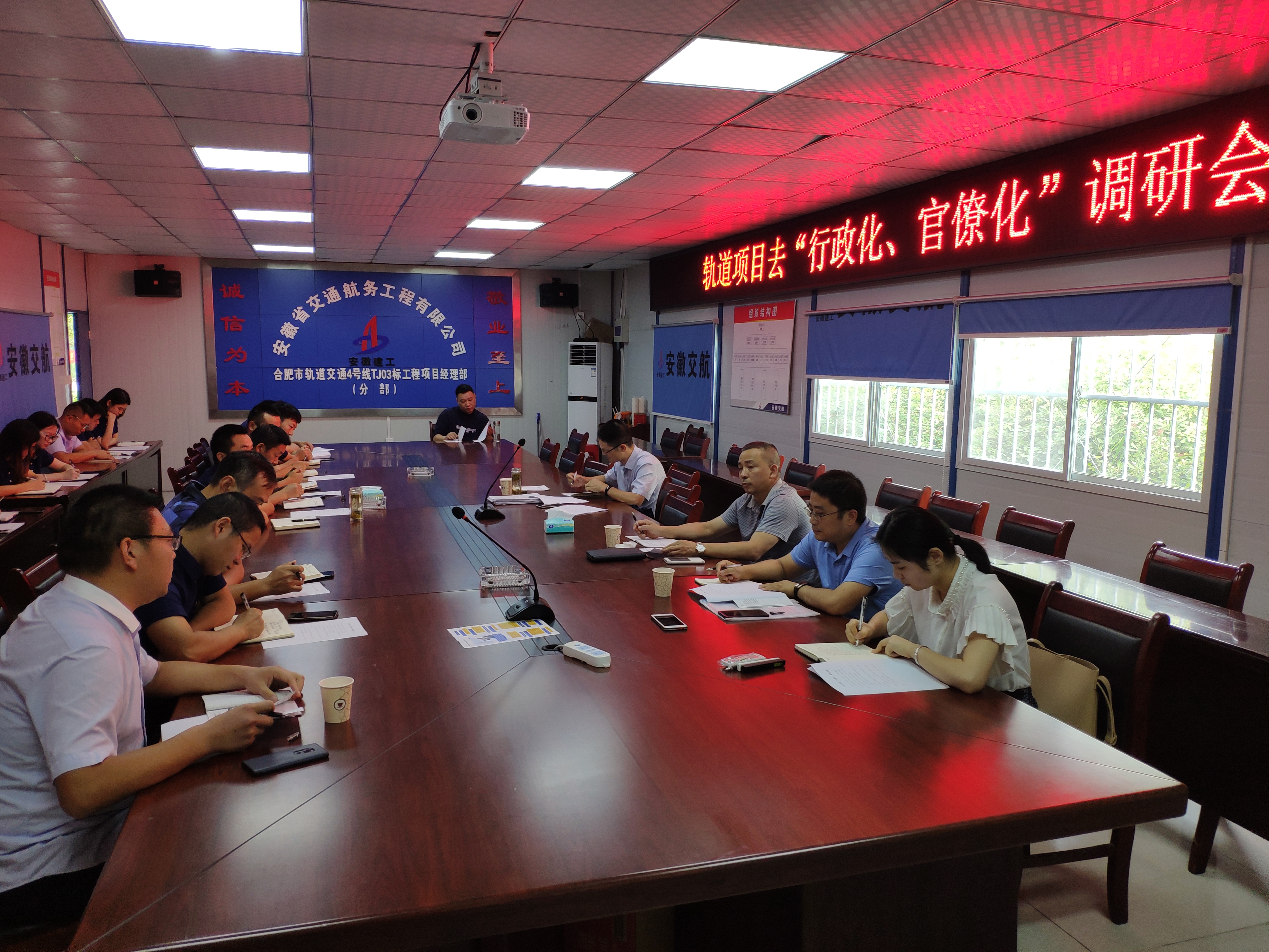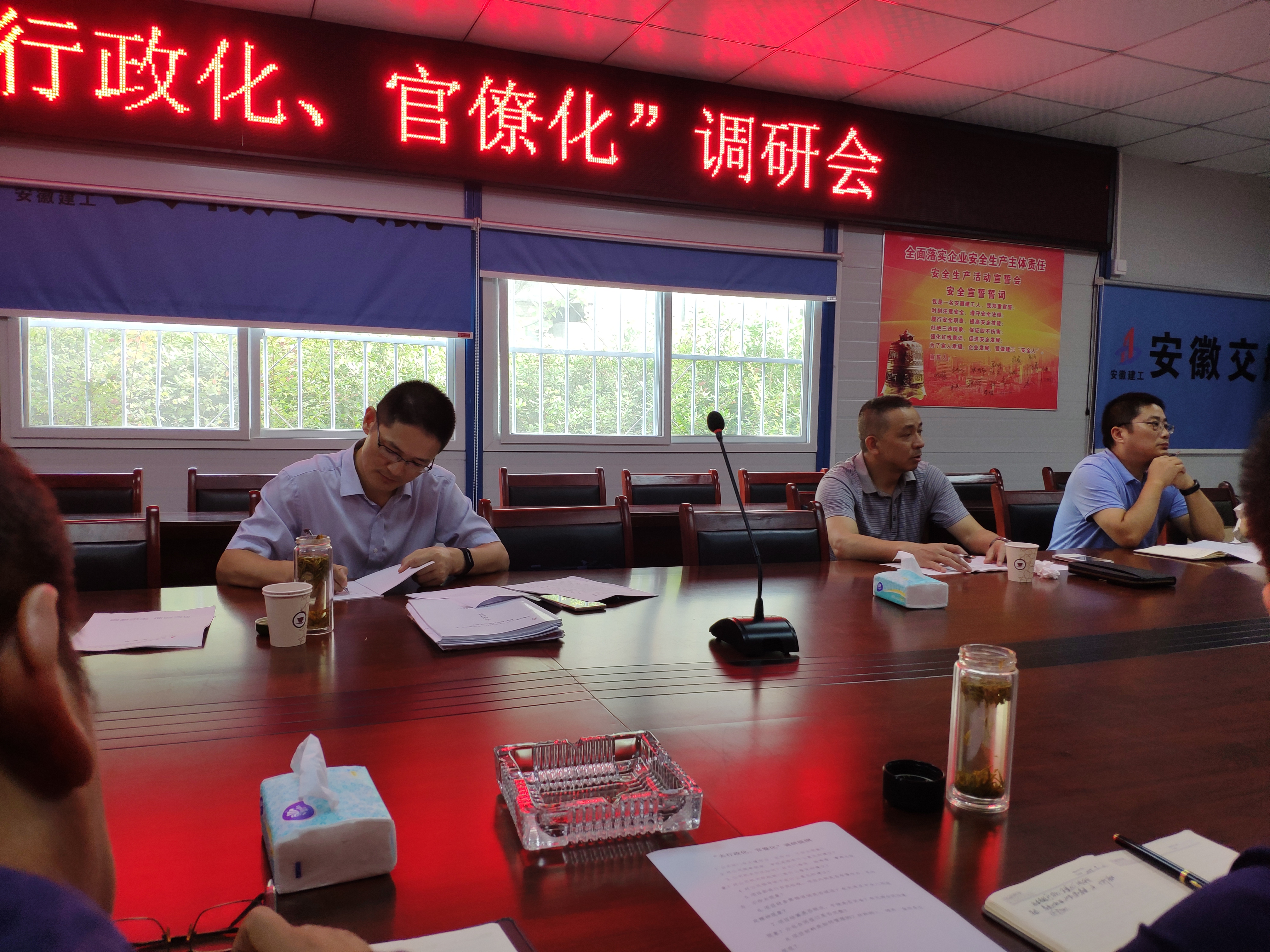 9月11日上午,安徽交航公司黨委副書記、總經(jīng)理方申柱一行赴軌道交通4號(hào)線TJ03標(biāo)項(xiàng)目調(diào)研工作,并主持召開“去行政化、官僚化”緊急行動(dòng)調(diào)研座談會(huì),公司工管部主任周和友、財(cái)資部主任李愛平、項(xiàng)目全體職工參加了座談?wù){(diào)研會(huì),項(xiàng)目經(jīng)理徐鑫代表項(xiàng)目作工作匯報(bào)。