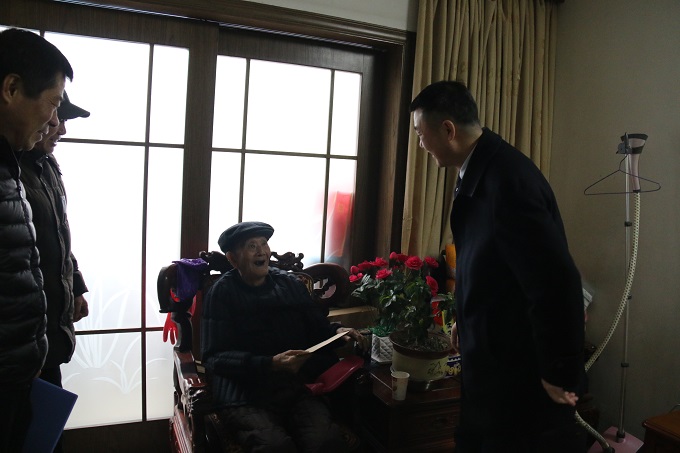 公司領(lǐng)導(dǎo)始終牽掛著離休干部們,李主席一行來(lái)到袁道甫、劉硯田家中,與老人嘮家常,了解老人的身體健康情況和家庭生活情況,代表公司向他們送上慰問(wèn)金和新春的祝福,囑咐他們保重身體。
