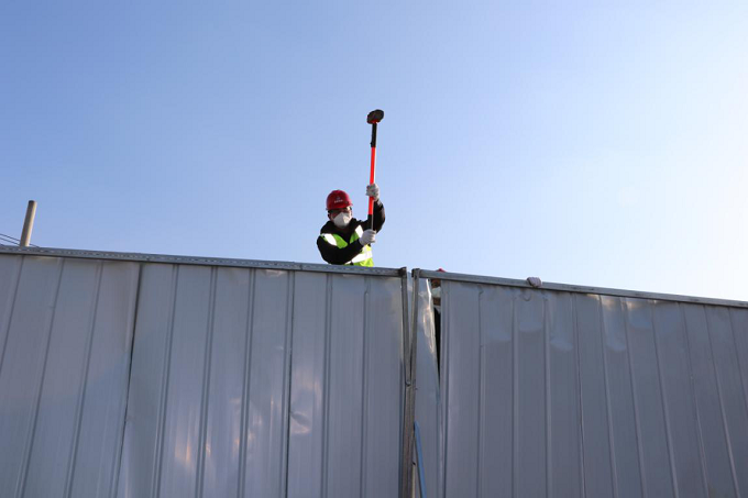 2020年2月16日,零下4攝氏度,夜雪方晴,大風。一行九人帶著鐵鍬和大錘,提著工具設備,跟隨著支部書記王應良沿著S338項目工程的路邊,一處處修補著倒塌的安全圍擋。