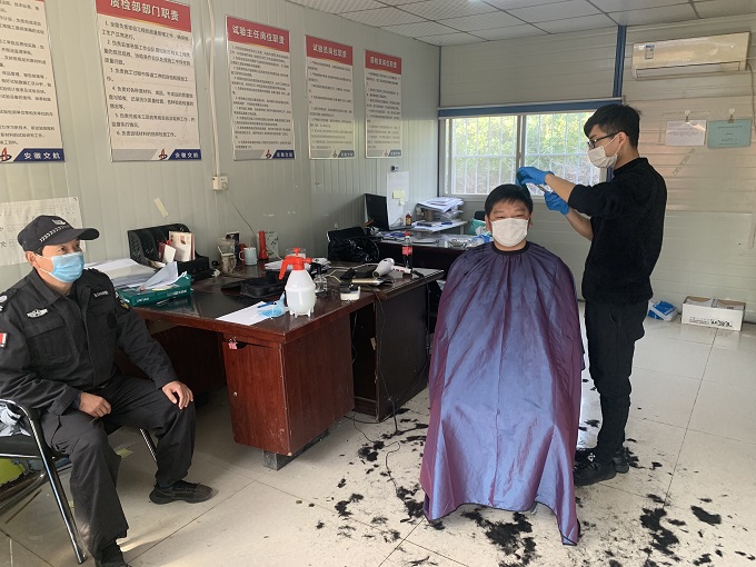 23號(hào)中午,一間獨(dú)立辦公室,一把椅子,一壺消毒液,一套簡(jiǎn)易的理發(fā)工具,一位理發(fā)師,簡(jiǎn)簡(jiǎn)單單十多分鐘,原本顯得凌亂的頭發(fā)便被打理干凈。為保障職工安全衛(wèi)生,房間提前消毒兩遍,過(guò)程中始終保持開(kāi)窗通風(fēng),排隊(duì)職工也都人人佩戴口罩、保持距離,至晚上六點(diǎn)半,30多位返崗職工和民工兄弟完成理發(fā),一個(gè)個(gè)面容抖擻,精神面貌煥然一新。這既是項(xiàng)目支部團(tuán)結(jié)友愛(ài)職工群眾的關(guān)愛(ài)之舉,也是激發(fā)職工工作熱情、增強(qiáng)凝聚力,打贏疫情防控阻擊戰(zhàn)的創(chuàng)新舉措。