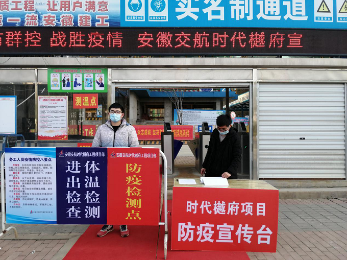 “抗疫”之時(shí),時(shí)代樾府項(xiàng)目積極貫徹落實(shí)中央、省委、省國(guó)資委、集團(tuán)黨委及公司黨委關(guān)于疫情防控和復(fù)工復(fù)產(chǎn)的部署安排,采取諸多有效措施做到“防疫、復(fù)工復(fù)產(chǎn)兩手抓”,于2020年2月24日正式復(fù)工。堅(jiān)定黨委領(lǐng)導(dǎo)、黨員帶頭模范、強(qiáng)化宣教陣地、體現(xiàn)國(guó)企擔(dān)當(dāng)。在集團(tuán)黨委及公司黨委的領(lǐng)導(dǎo)下,項(xiàng)目部在做好防疫工作的同時(shí)積極推進(jìn)復(fù)工復(fù)產(chǎn)工作。黨員干部沖鋒在前,切實(shí)做到“四帶頭”,充分發(fā)揮黨員干部的帶頭作用,調(diào)動(dòng)職工群眾抗疫的積極性。做好疫情宣傳工作,項(xiàng)目已制作宣傳條幅30個(gè)、宣傳牌45個(gè)、宣傳冊(cè)300冊(cè),并有3個(gè)擴(kuò)音器循環(huán)播放“疫情防護(hù)知識(shí)”,“帶頭抗疫、共同抗疫”是最大的宣傳。