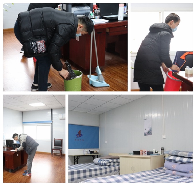 在大掃除活動中,大家卷起袖子消毒、拖地、擦窗、疊被子.....,忙得不亦樂乎,打掃后,每個辦公室和宿舍都煥然一新。通過此次活動的開展,為項目部營造了干凈衛(wèi)生的辦公生活環(huán)境,并使項目員工正確認識到個人衛(wèi)生的重要性,引導(dǎo)項目員工規(guī)范防控行為,做好個人防護衛(wèi)生,營造了良好的防疫衛(wèi)生氛圍。
