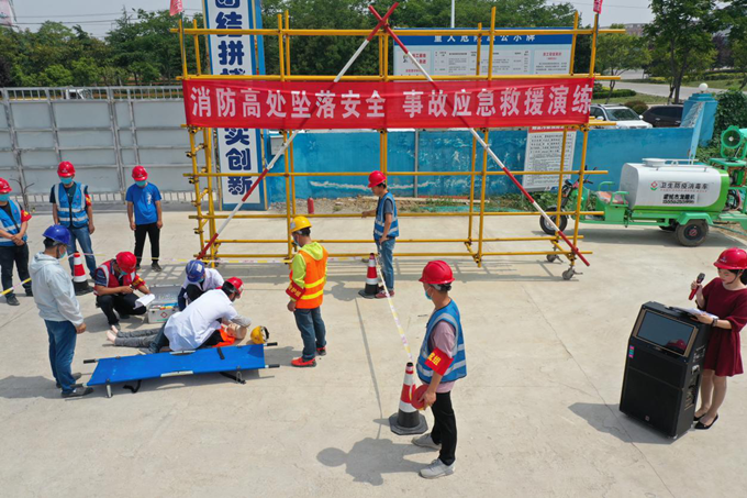 為認真貫徹“消除事故隱患,筑牢安全防線”安全月活動主題,全面落實項目建設(shè)“零輕傷”安全管控目標,結(jié)合項目建設(shè)進度和現(xiàn)場環(huán)境特點,5月31日,安徽交航公司蒙城綜合客運樞紐站項目開展消防應(yīng)急處置演練及高空墜落應(yīng)急救援演練。