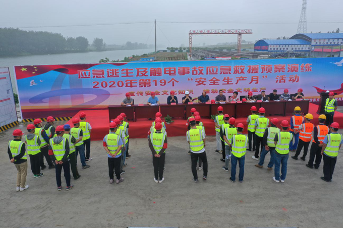 針對(duì)工地有可能發(fā)生的安全事故,此次安全演練共有應(yīng)急逃生急救與觸電急救兩方面內(nèi)容,演練的主要內(nèi)容有圍堰基坑涌水逃生,以及觸電、傷員急救。項(xiàng)目部從方案制定、人員安排、器材準(zhǔn)備、現(xiàn)場(chǎng)管理等方面出發(fā),項(xiàng)目部以及各施工班組均派遣管理人員和工人參與演練,并邀請(qǐng)利辛縣交通局、海事局、水利局、項(xiàng)目公司、監(jiān)理單位前來(lái)觀摩。此次應(yīng)急演練取得圓滿成功,得到現(xiàn)場(chǎng)觀摩單位的一致好評(píng)。