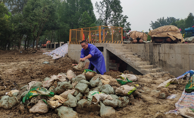 7月19日凌晨5時(shí)許,又是一夜的傾盆暴雨,董鋪水庫水位暴漲,南淝河多處發(fā)生河水倒灌,周邊許多小區(qū)受災(zāi)。當(dāng)日早上6時(shí),在接到緊急救災(zāi)指令,沈宏立即先行一步緊急調(diào)集項(xiàng)目庫存防汛物資趕赴集結(jié)點(diǎn),組織安排雨衣、雨鞋、救生衣的發(fā)放及編織袋、花雨布、鐵鍬、手套的分配,組織工人有序進(jìn)場,指引車輛機(jī)械有序通行。哪里物資缺了,他馬上調(diào)配;哪里人手少了,他馬上協(xié)調(diào);哪里新來救援人員設(shè)備了,他馬上匯報(bào)安排……一項(xiàng)項(xiàng)工作有條不紊地在進(jìn)行,直到他把最后一件雨衣、最后一雙雨鞋讓給工人,而自己卻被雨水淋透發(fā)燒。最終,在當(dāng)日下午3點(diǎn)左右,沈宏帶領(lǐng)工友們完成了周邊受災(zāi)小區(qū)排澇和群眾疏散任務(wù),在晚上9點(diǎn)完成近300米堤壩拓寬和加固任務(wù)。