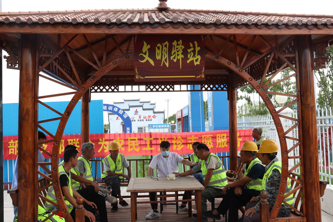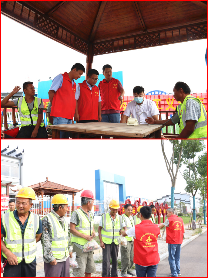 為進(jìn)一步提高工人健康意識(shí)和自我保健能力,倡導(dǎo)健康生活方式,9月29日下午,安徽交航亳州2號(hào)3號(hào)地塊PPP項(xiàng)目黨支部聯(lián)合當(dāng)?shù)厣鐓^(qū),邀請(qǐng)社區(qū)醫(yī)院醫(yī)護(hù)人員為項(xiàng)目一線工友們進(jìn)行愛心義診活動(dòng)。