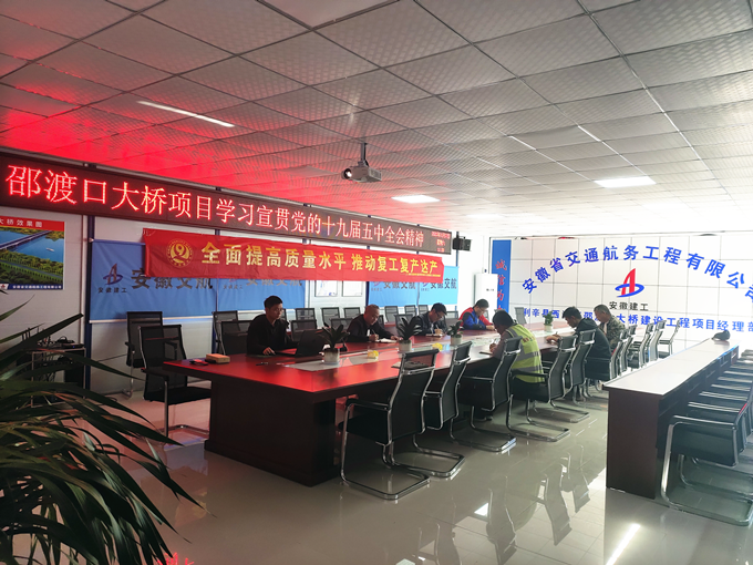 近日,利辛西淝河邵渡口大橋項(xiàng)目黨支部切實(shí)將學(xué)習(xí)黨的十九屆五中全會(huì)精神作為當(dāng)前的重要政治任務(wù),第一時(shí)間組織、第一時(shí)間行動(dòng),通過(guò)不同形式開(kāi)展學(xué)習(xí)活動(dòng)。
