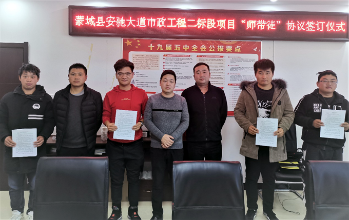 為加強(qiáng)項目青年人才隊伍建設(shè),促進(jìn)項目青年員工快速成長,12月12日晚,安徽交航蒙城安馳大道項目部組織開展“師帶徒”協(xié)議簽訂活動,積極落實公司“師帶徒”人才培養(yǎng)方案,做好“傳幫帶”工作。