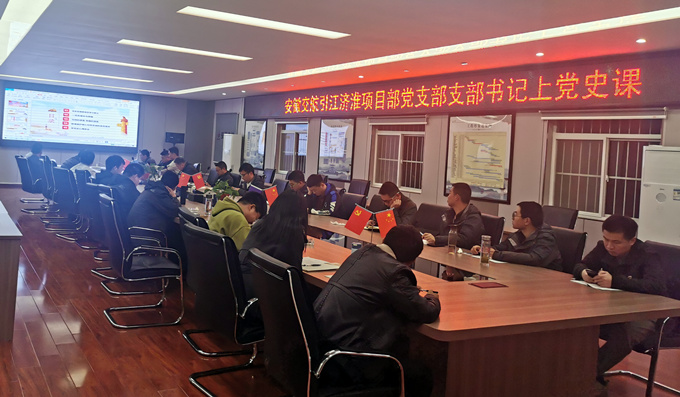 引江濟淮項目黨支部通過舉辦專題黨史課,組織全體項目職工進行黨史學習教育。黨史課以時間為主線,以歷次黨代會為脈絡,通過一張張對比強烈、內(nèi)涵豐富的歷史照片,一個個不怕犧牲、忘我斗爭的光輝形象,一段段可歌可泣、感人至深的革命故事,帶領全體項目人員重溫黨的歷史,進一步增強項目部每位黨員和青年的自豪感、責任感和使命感,感受著在中國共產(chǎn)黨的領導和帶領下中國不斷走向輝煌。