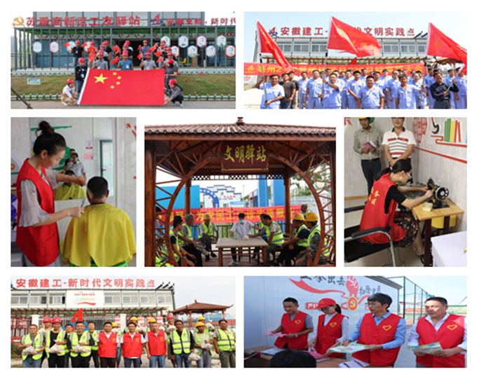 自創(chuàng)建以來,安徽交航黨委堅持高標準定位、高質(zhì)量推動,多次組織滁州、亳州兩大項目主要負責人帶隊外出學習“取經(jīng)”,結(jié)合自身實際,創(chuàng)新提煉出新時代文明實踐點建設“五個一”工作法,指導并推動項目新時代文明實踐點建設,其中亳州PPP項目新時代文明實踐點還被安徽建工集團列入“黨建領(lǐng)航”示范庫。同時,為了將項目新時代文明實踐點做出亮點和特色,安徽交航黨委堅持以“群眾”為根本,積極創(chuàng)新文明實踐內(nèi)容,在實踐點創(chuàng)建新思想講習所、黨建聯(lián)建活動室、社區(qū)聯(lián)絡站、黨建工作室、志愿服務中心、工友休閑驛站、工友培訓中心、文明創(chuàng)城標化工地展示中心、黨員活動室等實踐服務場所,場所建設的大小、位置、平面布局由項目部結(jié)合實際確定。高效落成的新時代文明實踐點,讓“文明之花”在項目駐地競相綻放,給城市增添了一抹亮色。