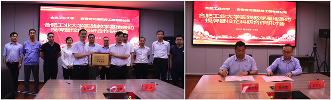 5月10日下午,安徽交航公司和合肥工業(yè)大學(xué)校企實(shí)踐教學(xué)基地簽約授牌暨校企科研研討會(huì)在引江濟(jì)淮項(xiàng)目部舉行。公司黨委書(shū)記、董事長(zhǎng)、總經(jīng)理方申柱與合肥工業(yè)大學(xué)土木與水利學(xué)院院長(zhǎng)王靜峰舉行會(huì)談,雙方就實(shí)踐教學(xué)基地建設(shè)、相關(guān)科研課題內(nèi)容以及深化產(chǎn)學(xué)研合作等方面進(jìn)行了深入溝通與交流,并共同簽約授牌合肥工業(yè)大學(xué)實(shí)踐教學(xué)實(shí)習(xí)基地。